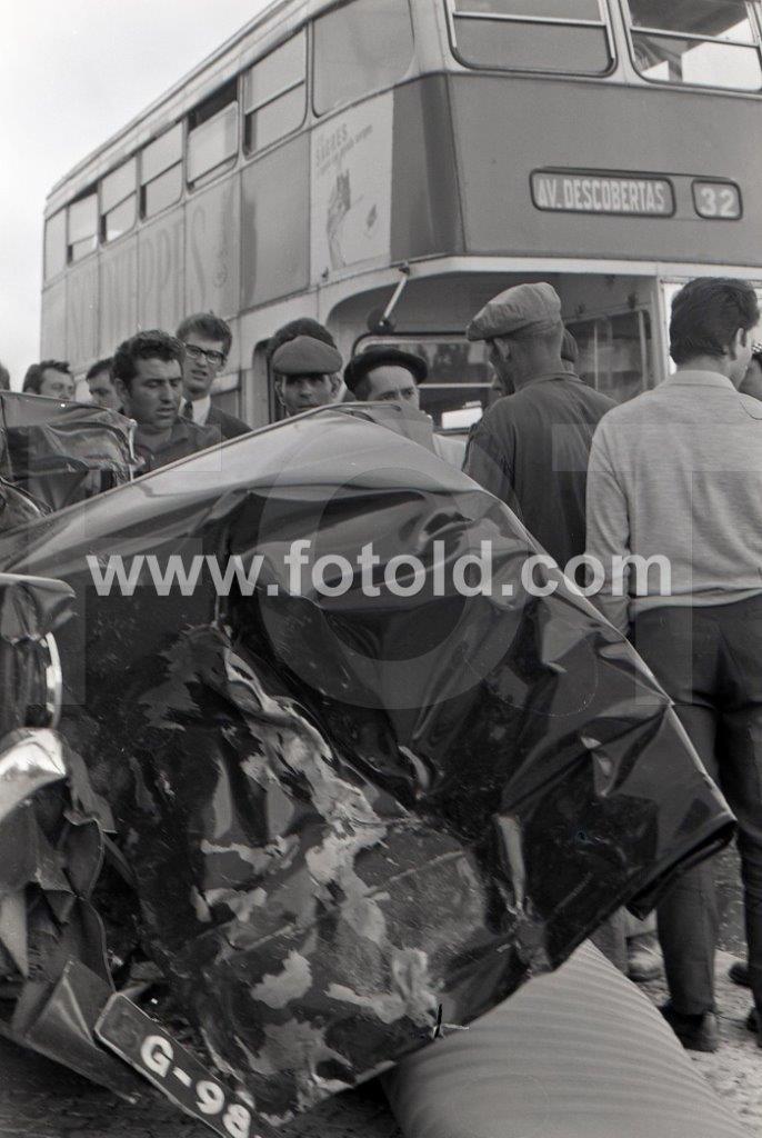 1970 Acidente entre um Renault 10 e um autocarro da CARRIS na Avenida da Índia, Lisboa