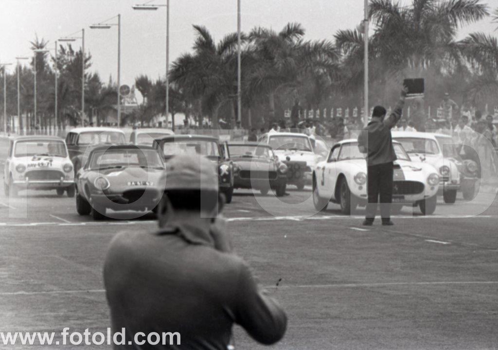 1963 Partida para a VI Taça Cidade de Luanda, Angola. Ferrari 250 GT de Flávio Santos e Jaguar E type (BA-61-62) de Nogueira Pinto.