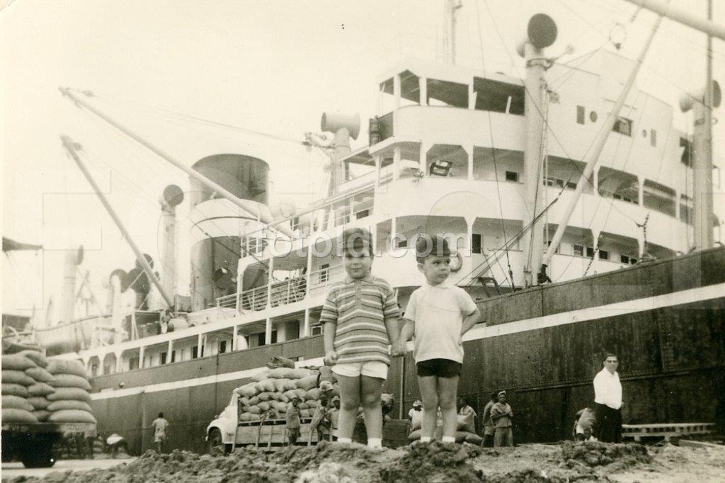 1968 Carregamento de castanhas de cajú no porto de Quelimane, Moçambique
