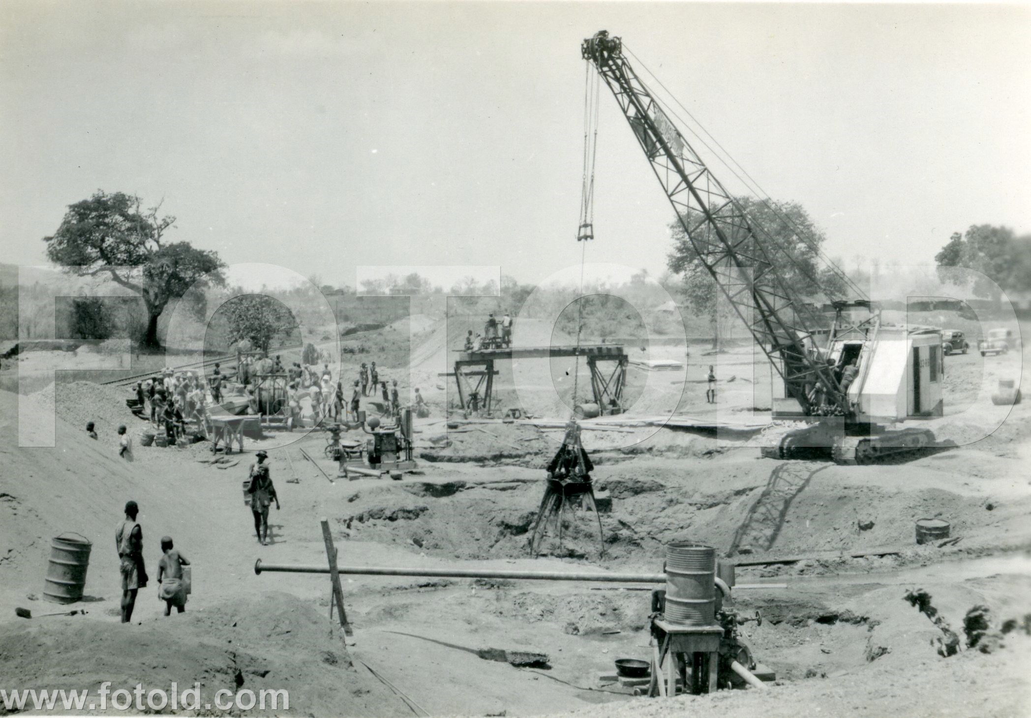 c 1955 Dragando areia para um pilar de uma ponte em Angola (Ref: A13SNP277)