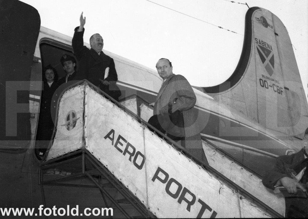 c 1955 Avião DC-4 da Sabena no Aeroporto de Lisboa (Ref: A14SSN164)