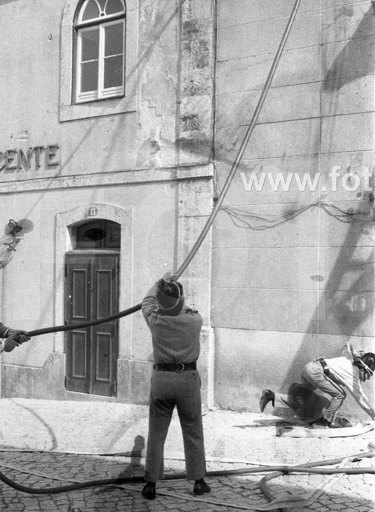 c 1973 Bombeiros em simulacro de incêndio junto ao Teatro Gil Vicente em Cascais