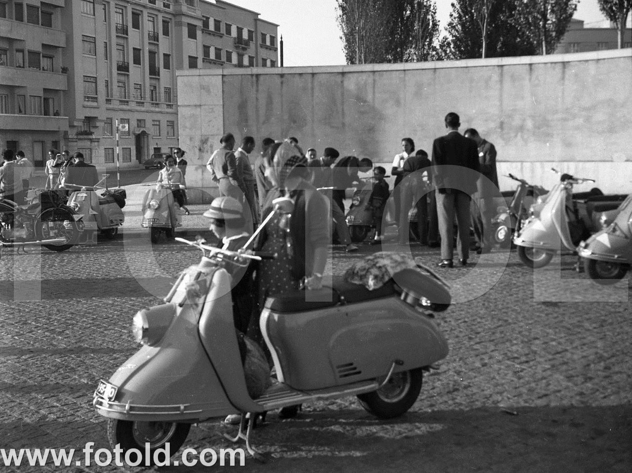 1954 Concentração de ´lambretas´ e motos junto ao IST, em Lisboa.