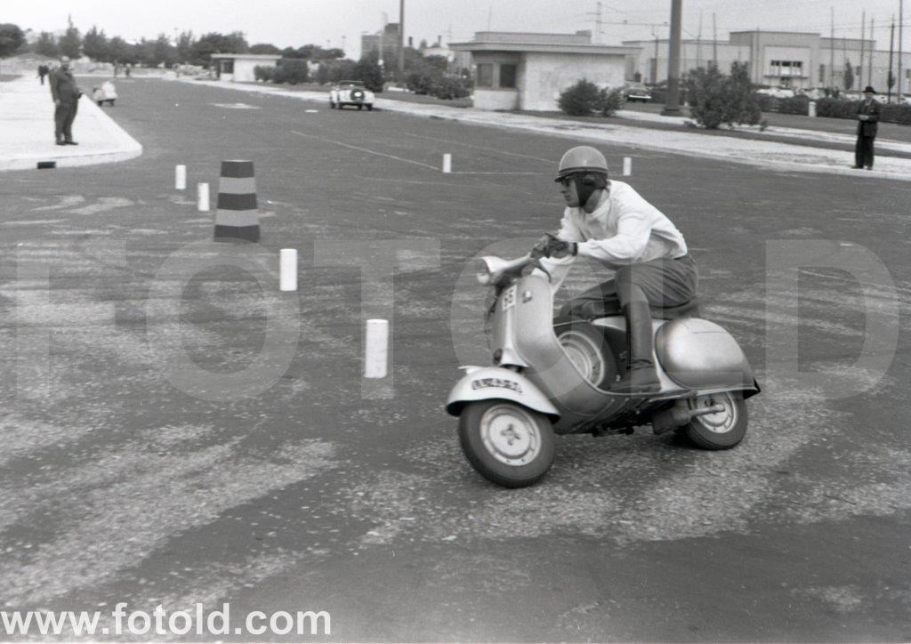 1956 Gincana de motos em Belém, Lisboa. Vespa