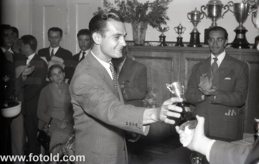 1956 Motociclismo na Pista do Sporting SCP. Entrega de prémios aos motociclistas