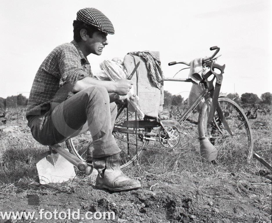 1971 Alentejano em pausa para almoço, junto à bicicleta.