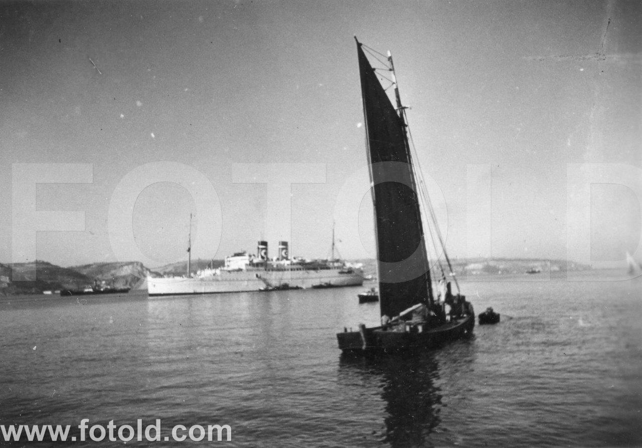 1933 Paquete e fragata no rio Tejo (Ref: A15TFP555)