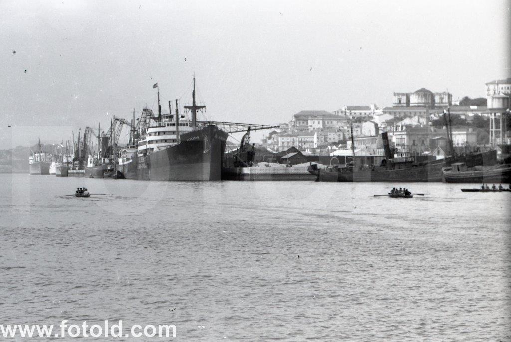 1956 Equipa de Remo do Clube Naval de Lisboa no rio Tejo, junto à zona do Beato