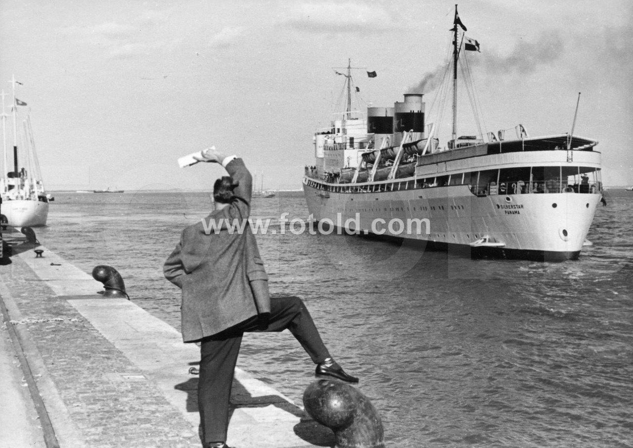 1956 Navio de cruzeiro SS Silverstar no porto de Lisboa