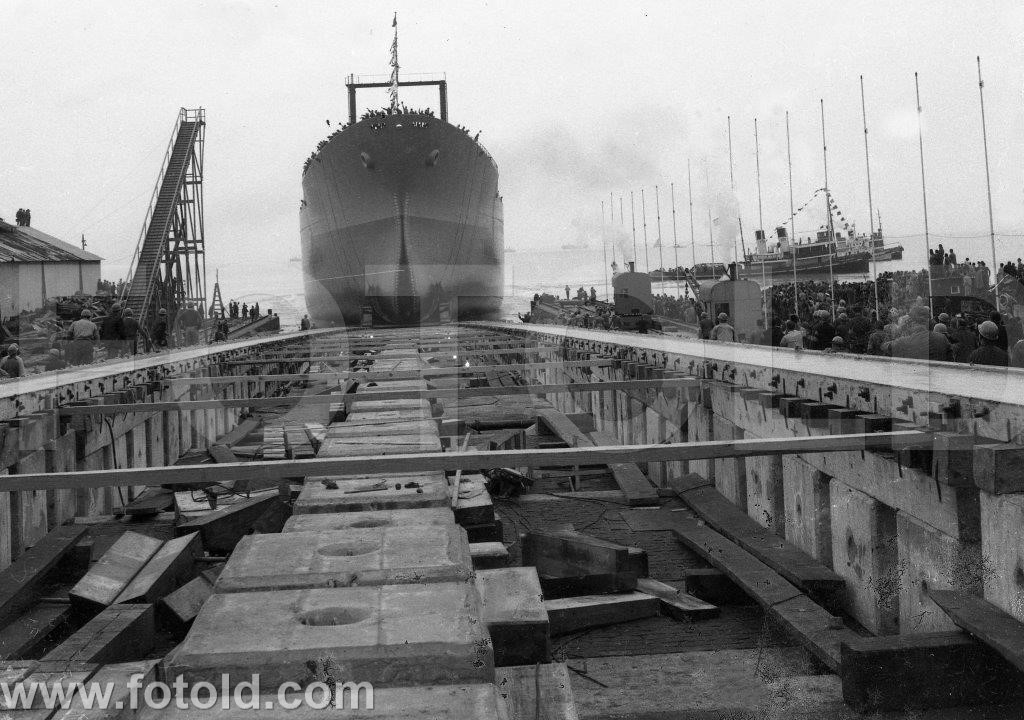 1960 Lançamento do navio tanque Gerês, no Alfeite