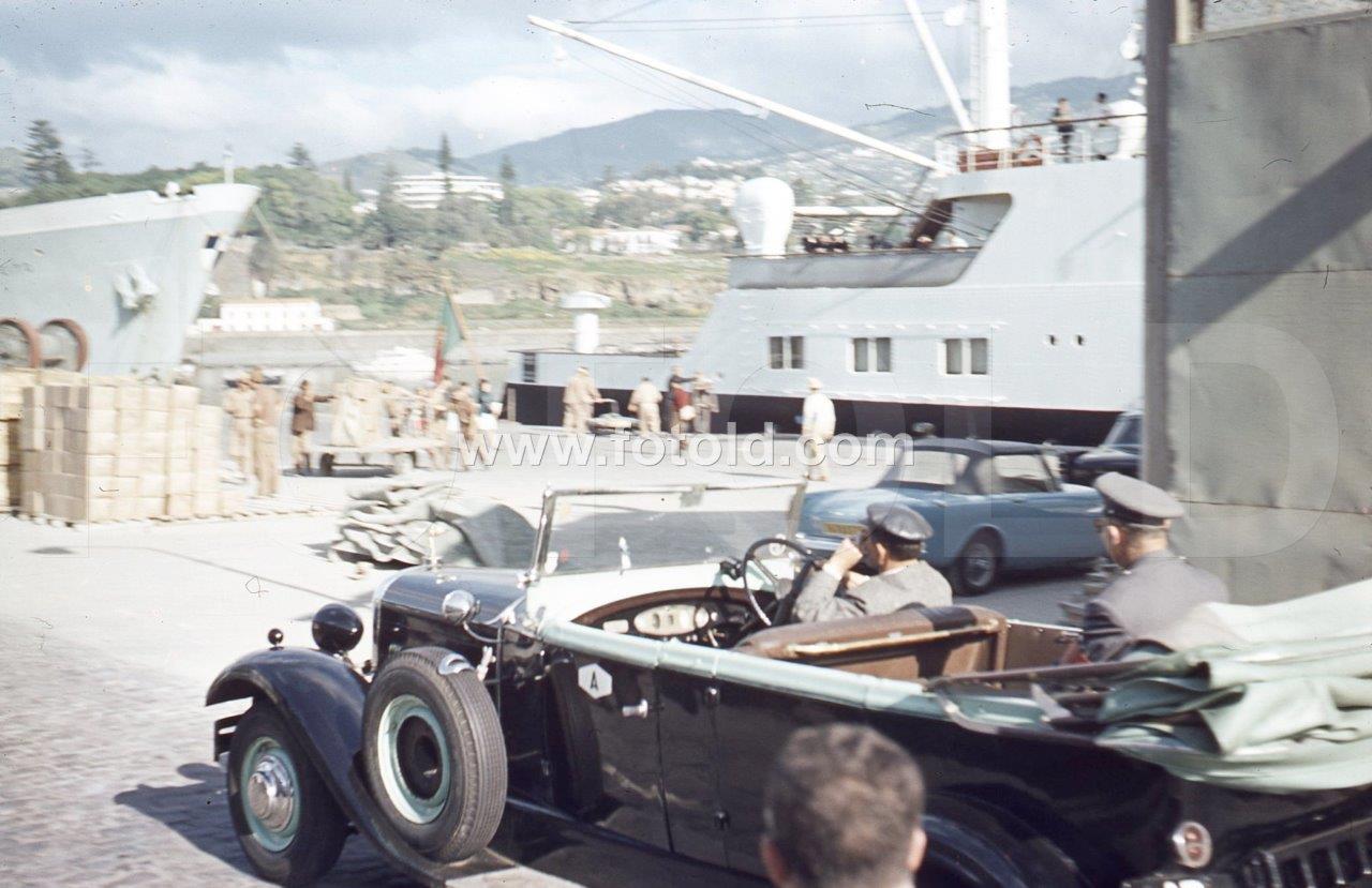 1970 Carro de aluguer Hudson junto ao paquete Funchal e Príncipe Perfeito, Madeira
